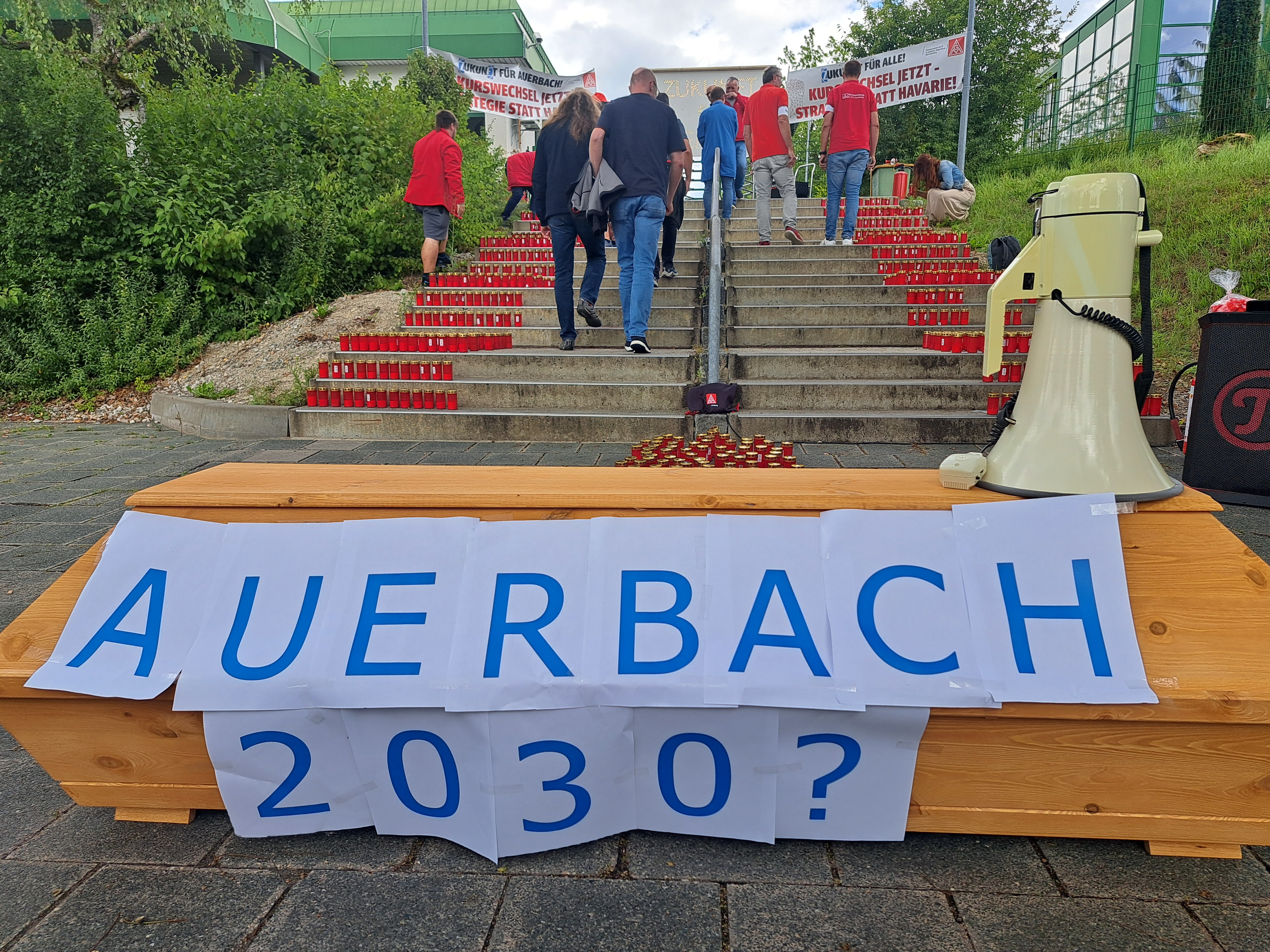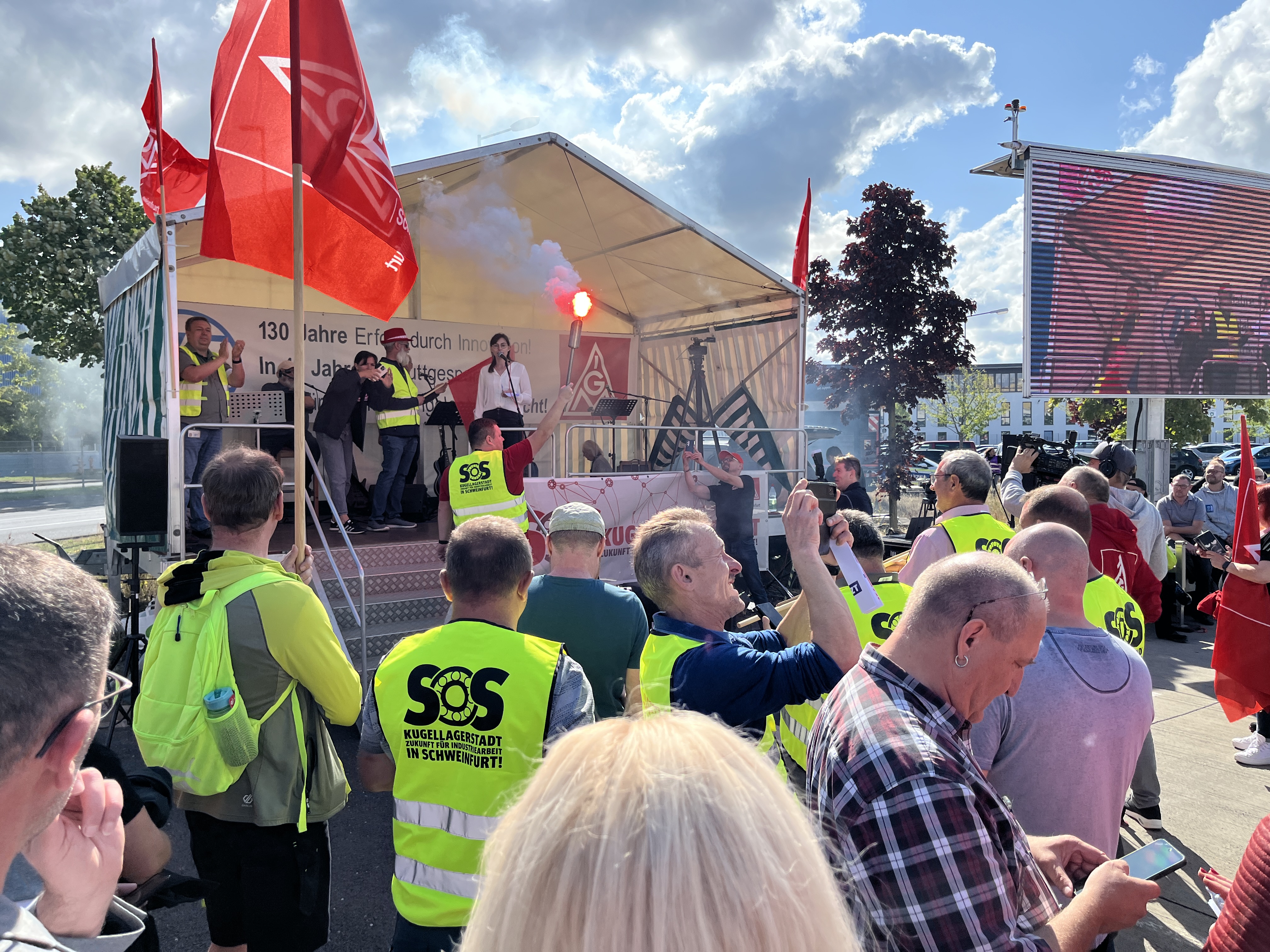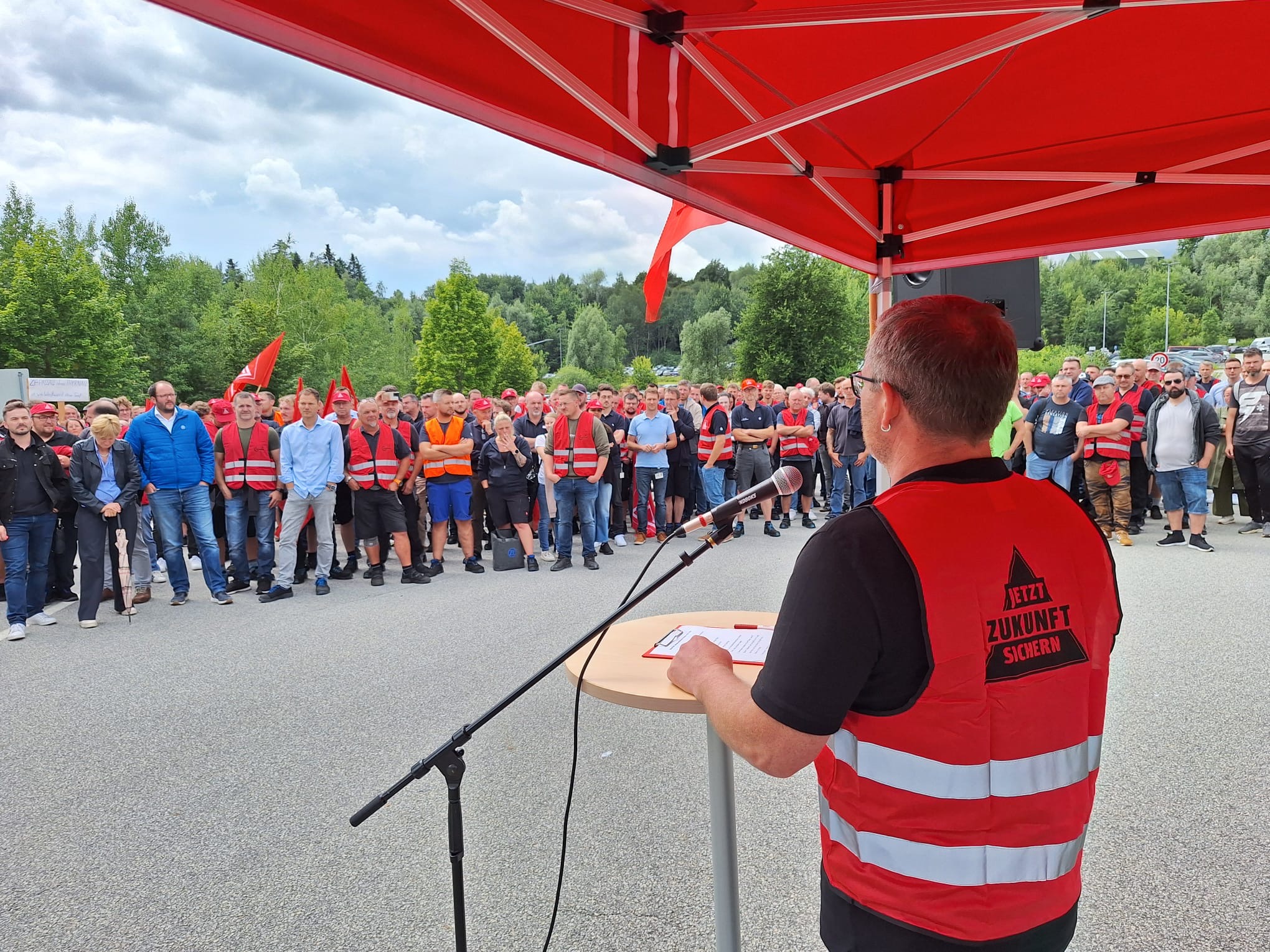 Was für ein starkes Zeichen des Widerstands: 6500 ZF-Beschäftigte in Schweinfurt, Auerbach, Thyrnau, Nürnberg und Bayreuth haben beim bundesweiten ZF-Aktionstag am 29. Juli 2025 für ihre Zukunft demonstriert. Das Unternehmen droht der Division E mit Verlagerungen, Stellenabbau und Ausgliederung. Und der Protest zeigte Wirkung: Der Aufsichtsrat hat in seiner Sitzung anders als geplant keine Entscheidung gegen die Zukunft der Division E getroffen. Doch die Kahlschlag-Pläne sind keineswegs vom Tisch. Wir haben nun Zeit gewonnen, bis Ende September einen gemeinsamen Weg mit dem Unternehmen für die Zukunft der Division E zu finden.