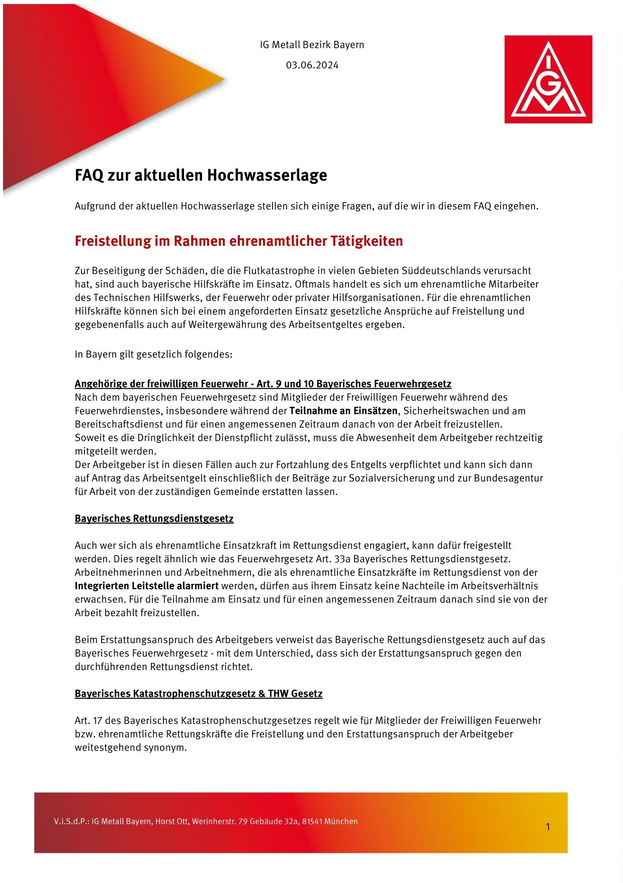 Die aktuelle Hochwasserlage trifft die Menschen hart. In den betroffenen Gebieten leben IG Metall Mitglieder. Es ist insofern davon auszugehen, dass Mitglieder davon betroffen sind bzw. sein werden. Die Satzung der IG Metall sieht für derart außergewöhnliche Fälle eine Notfallunterstützung vor.